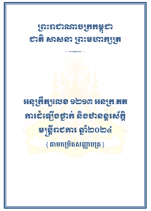 អនុក្រឹត្យលេខ ១២១៣ អនក្រ.តត ការដំឡើងថ្នាក់ និងឋានន្តរស័ក្តិ មន្រ្តីរាជការ ឆ្នាំ២០២៤ (តាមកម្រិតសញ្ញាបត្រ)