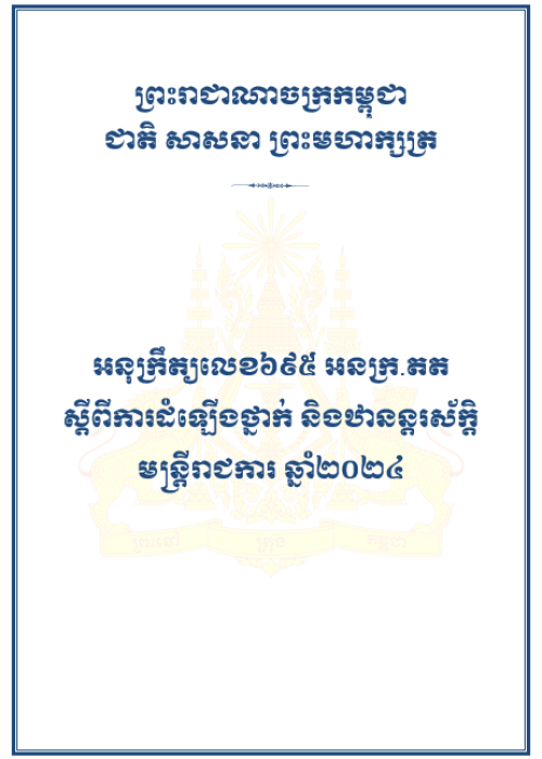 អនុក្រឹត្យលេខ៦៩៥ អនក្រ.តត ស្តីពីការដំឡើងថ្នាក់ និងឋានន្តរស័ក្តិមន្រ្តីរាជការ ឆ្នាំ២០២៤