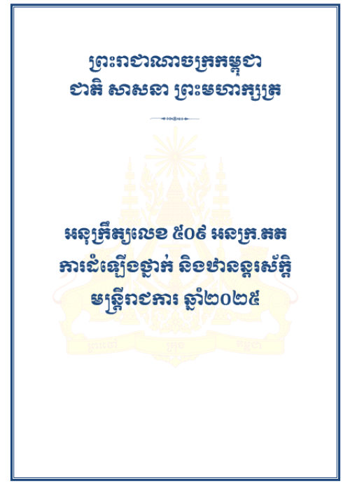 អនុក្រឹត្យលេខ ៥០៩ អនក្រ.តត ការដំឡើងថ្នាក់ និងឋានន្តរស័ក្តិ មន្រ្តីរាជការ ឆ្នាំ២០២៥