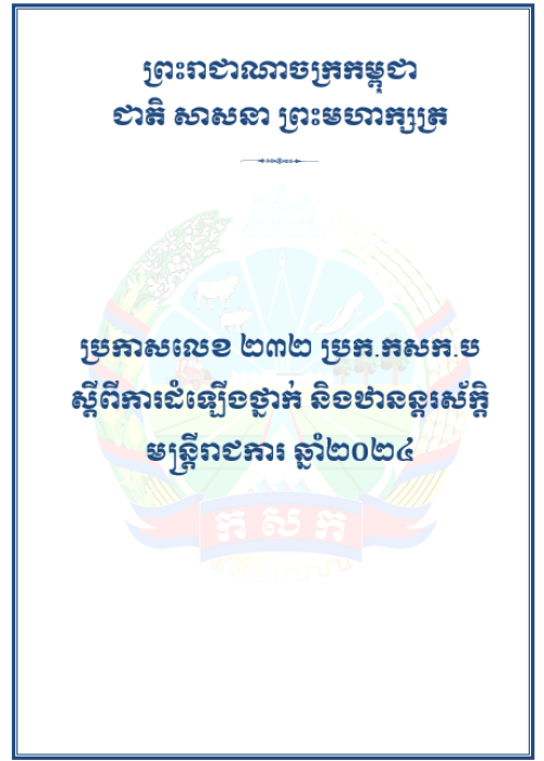 ប្រកាសលេខ២៣២ ប្រក.កសក.ប ស្តីពីការដំឡើងថ្នាក់ និងឋានន្តរស័ក្តិមន្រ្តីរាជការ ឆ្នាំ២០២៤