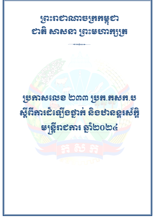 ប្រកាសលេខ២៣៣ ប្រក.កសក.ប ស្តីពីការដំឡើងថ្នាក់ និងឋានន្តរស័ក្តិមន្រ្តីរាជការ ឆ្នាំ២០២៤