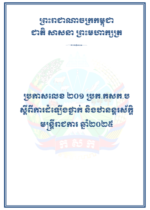 ប្រកាសលេខ ២០១ ប្រក.កសក.ប ស្តីពីការដំឡើងថ្នាក់ និងឋានន្តរស័ក្តិ មន្រ្តីរាជការ ឆ្នាំ២០២៥