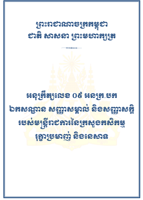 អនុក្រឹត្យលេខ ០៩ អនក្រ.បក ឯកសណ្ឋាន សញ្ញាសម្គាល់ និងសញ្ញាសក្តិ របស់មន្រ្តីរាជការនៃក្រសួងកសិកម្ម រុក្ខាប្រមាញ់ និងនេសាទ