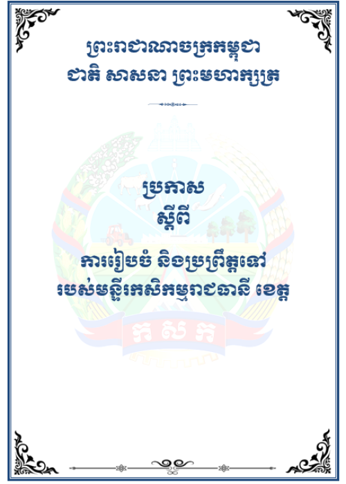 ប្រកាសស្តីពីការរៀបចំប្រព្រឹត្តទៅរបស់មន្ទីរកសិកម្មរាជធានី ខេត្ត
