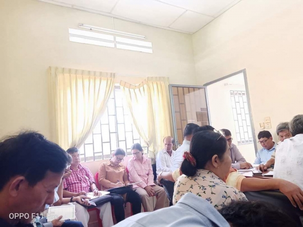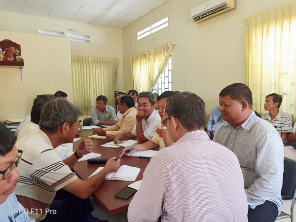នៅខណ្ឌរដ្ឋបាលជលផលភ្នំពេញ៖ លោកនាយខណ្ឌបានដឹកនាំមន្ត្រីទាំងអស់ចូលរួមប្រជុំពិភាក្សាស្ដីពីការអនុវត្តលទ្ធិប្រជាធិបតេយ្យនៅក្នុងព្រះរាជាណាចក្រកម្ពុជារបស់ក្រសួងមហាផ្ទៃ។