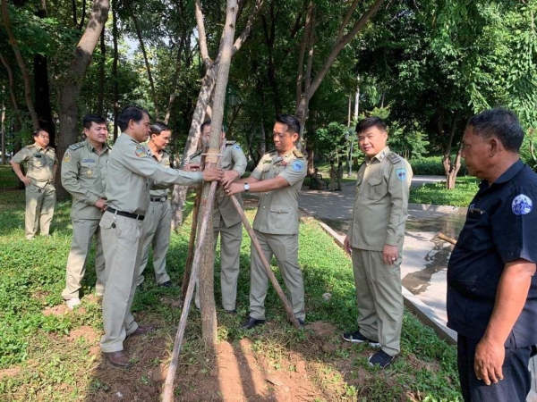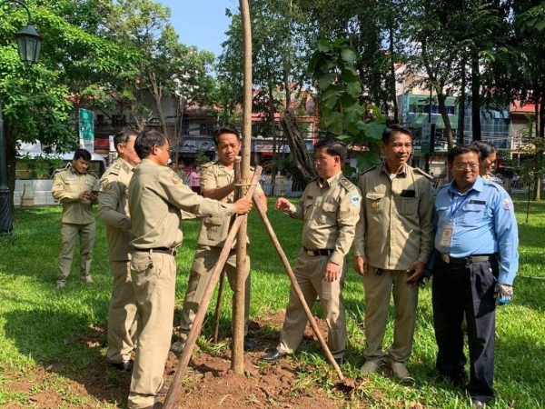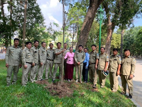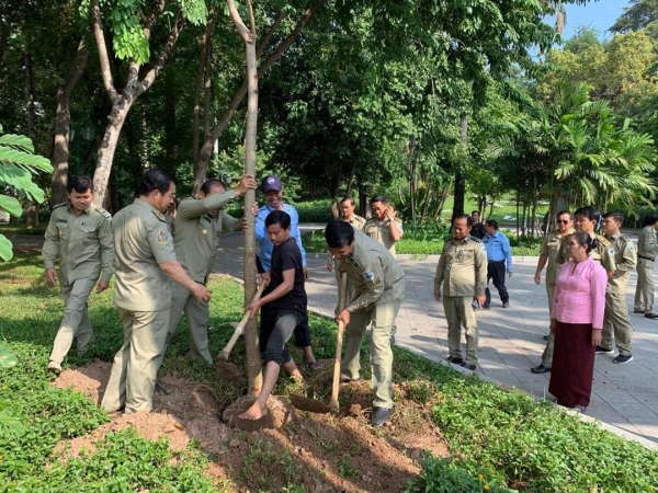 ឯកឧត្តមអភិបាលនៃគណៈអភិបាលរាជធានីភ្នំពេញ លោកនាយខណ្ឌរដ្ឋបាលព្រៃឈើភ្នំពេញបានដឹកនាំមន្ត្រីក្រោមឱវាទចុះដាំដើមឈើប្រភេទប្រណីត(ធ្នង់)