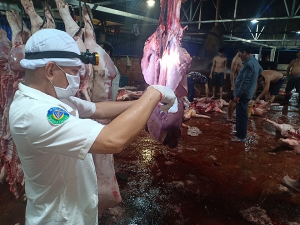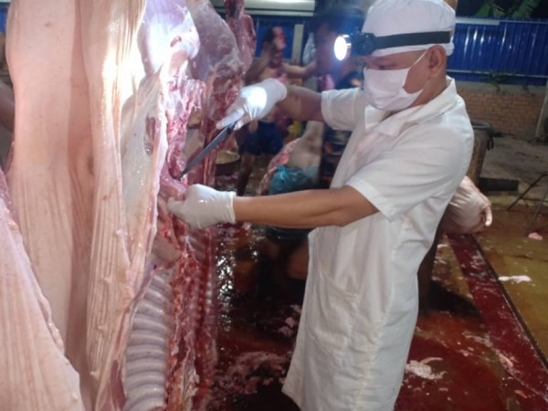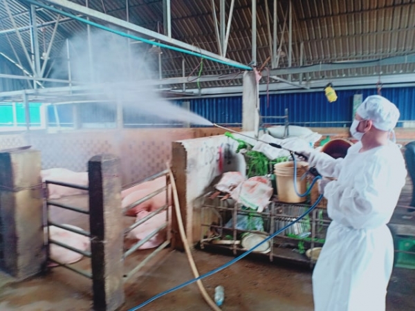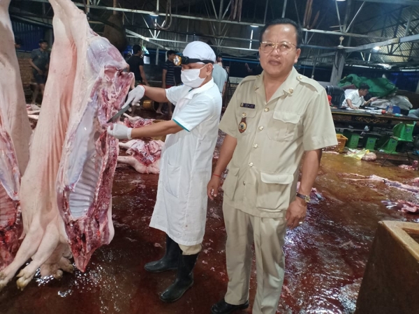 ដឹកនាំមន្ត្រីជំនាញ រួមជាមួយសមាគមអ្នកចិញ្ចឹមសត្វកម្ពុជាបានចុះពិនិត្យម៉ាស៊ីនបាញ់ថ្នាំ និងការធ្វើជីវសុវត្ថិភាពក្នុងបរិវេនសត្តឃាតដ្ឋានទាំងមូល។